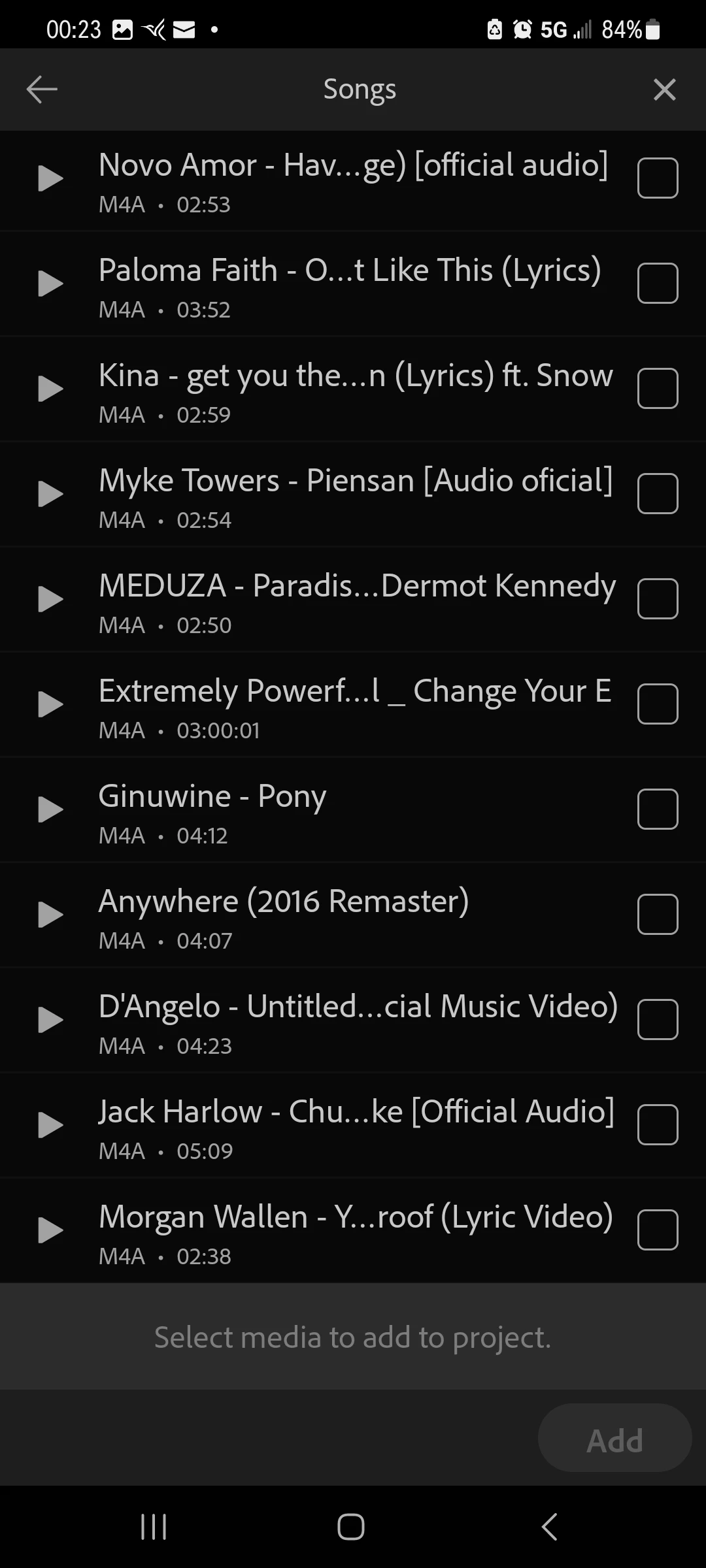 In the Rush mobile app, can you please add an option to keyword search our songs we when adding audio from our media files?