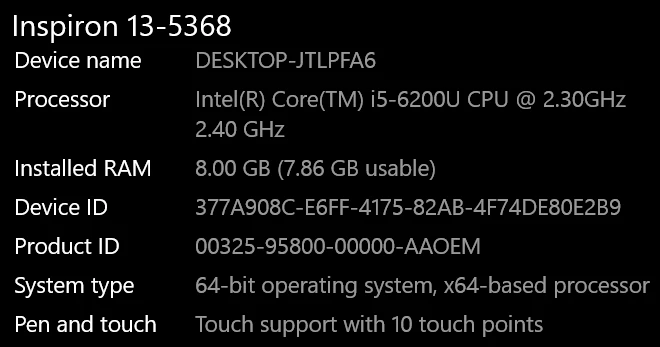 My specs: