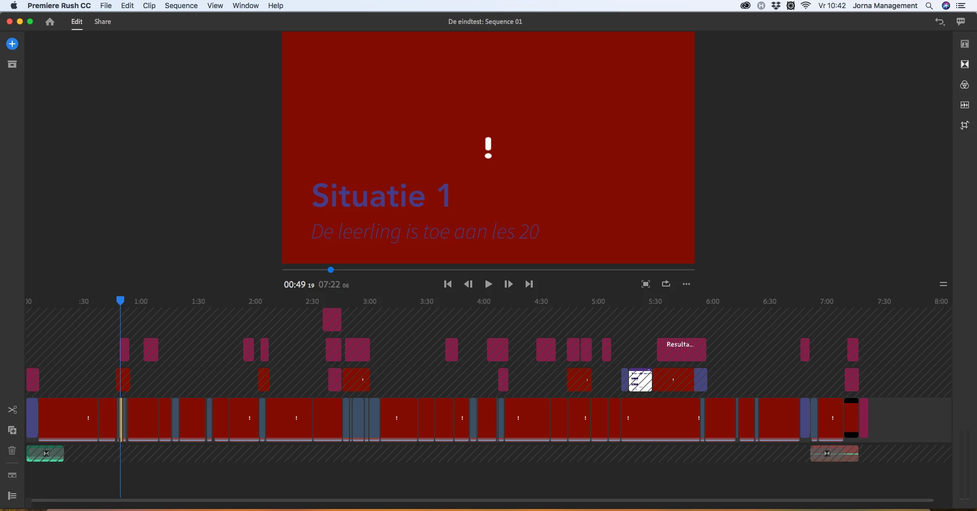 I was almost finished editing a video in Premier Rush, put the laptop away for a bit, and when I reopened it the audio was completely distorted. It concerns only the audio track that's locked to the video (the intro song works fine). It plays fragments that I have cut out, in slow motion. The track looks fine, the visual still corresponds to original audio and to the talking in the video but you just hear something else entirely. I cannot figure out what went wrong.