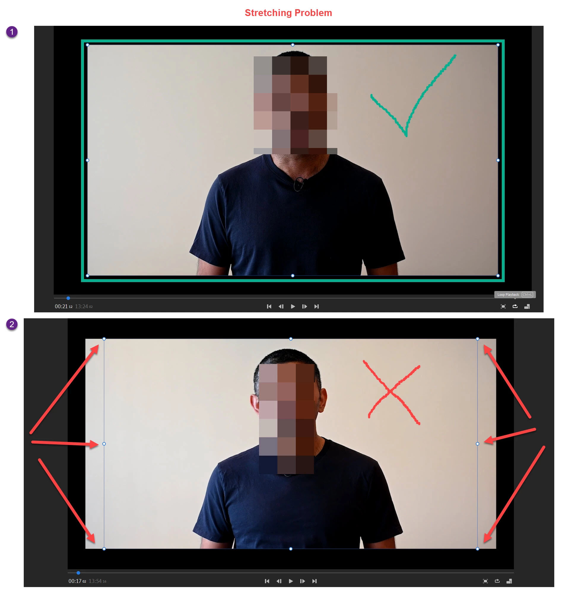 I've made nearly 20 videos for my online course and one of them has stretched the video of me. I finally figured out the one difference between this and the other 19 videos and it has to do with the dots around the edge of the video (as you can see in the bottom of the screenshot, the incorrect one has the dots slightly inwards).