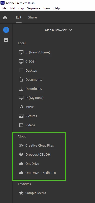 How do I add media files from my CC Library into a Premiere Rush project? I don't mean simply adding media files from my Creative Cloud Files folder synced on my Mac. I can do that. I can't find the Library folder that is in the CC "Your Work" tab.