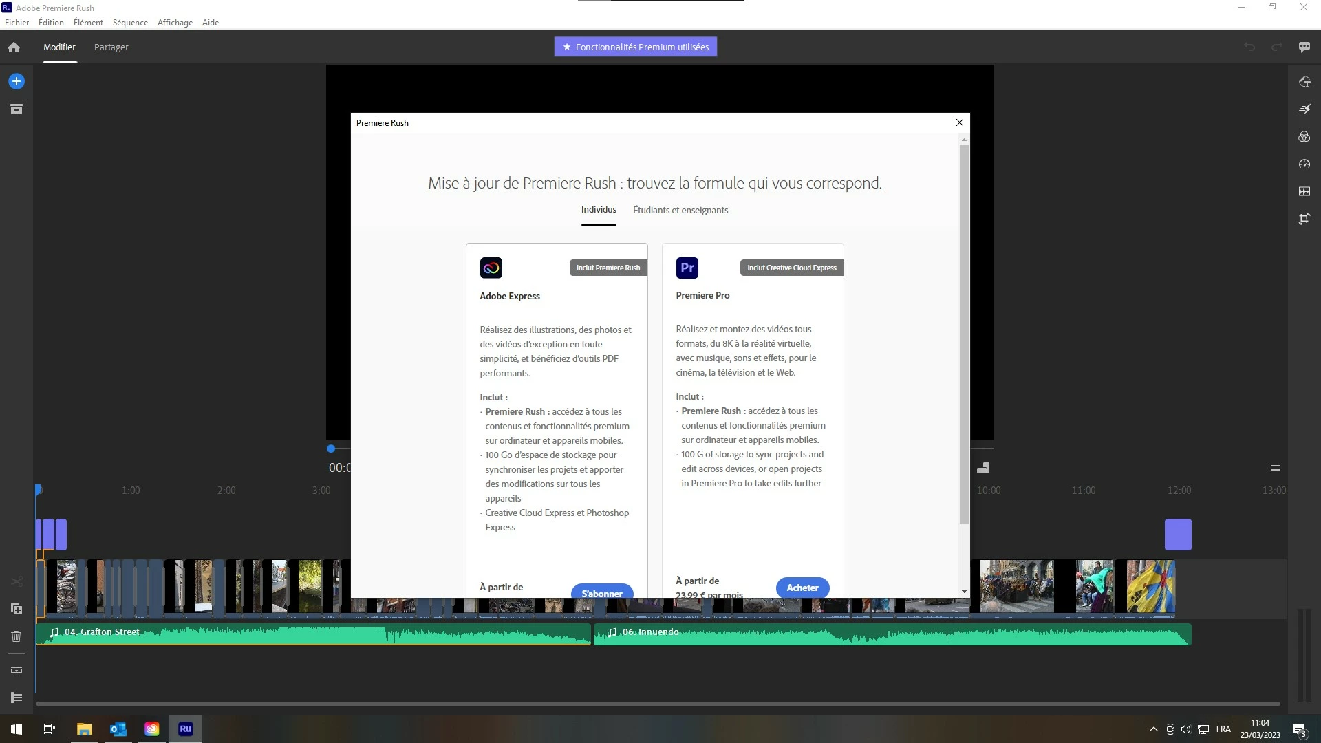 Alors que je le faisait sans problème antérieurement, je n'arrive plus à partager mes montages vidéo sans que Rush ne me dirige désormais sur un abonnement que j'ai déjà. Quelqu'un de vous a t'il renconté le même problème et a t'il pu le résoudre ? Ci-joint captures d'écrans, merci !
