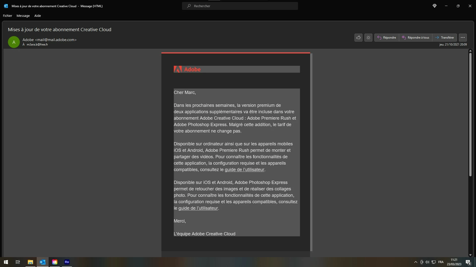 Merci pour votre réponse Myra, j'ai déjà effectué la procédure concernant l'application Creative Cloud Desktop sans succès. Par contre qu'entendez-vous par: "se déconnecter de Première Rush et de s'y reconnecter" ?