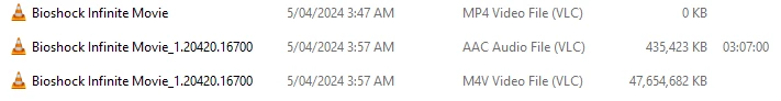 In the folder it generates an AAC audio file and M4V video file, as well as an empty MP4 File.