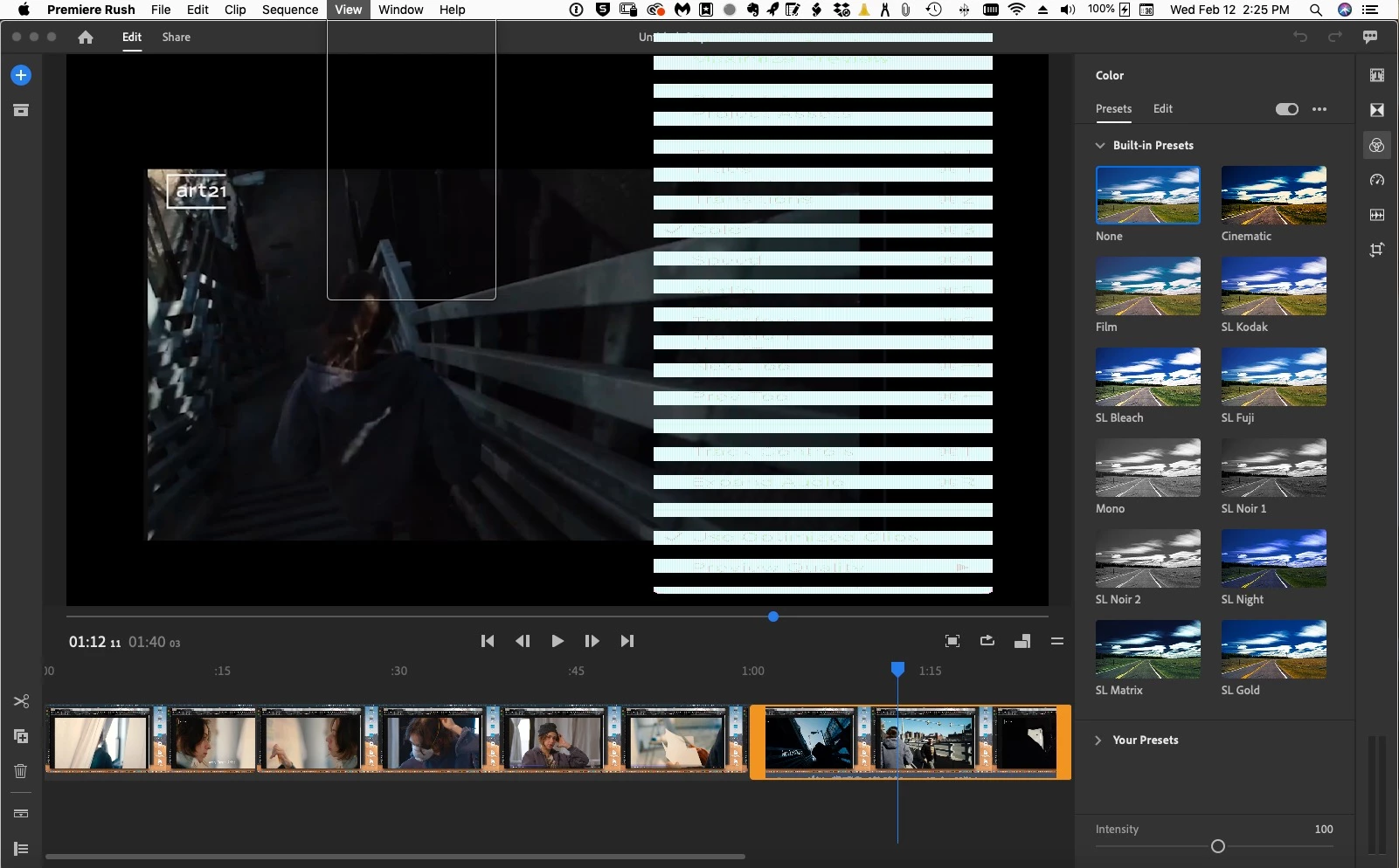 I recently updated Adobe Rush to ver. 1.5 and suddenly the application dropdown menus disintegrated into a garbled mess. An outline of the dropdown would appear, but, the contents of it appeared offset to the right with a purple background and white text stretched horizontally. I attach a screenshot but it failed to adequately capture the way I saw it, but, still shows a distinct problem.