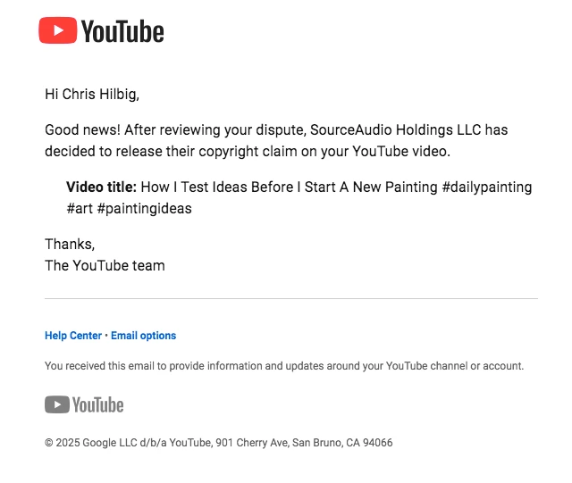 Need help with a YouTube copyright claim on music