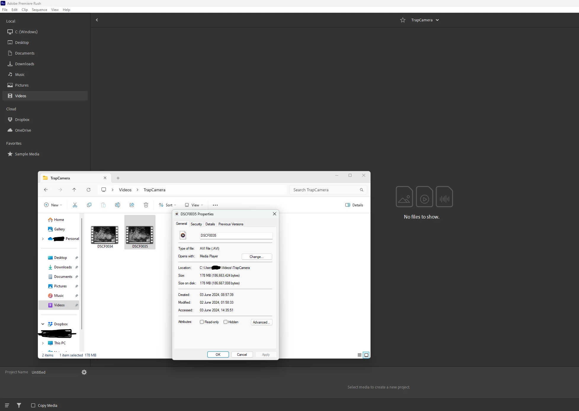 I'm getting the message "No files to show" in every folder on my hard drive and any attached SD cards. The specific files I want to import are .avi files. Lightroom can see these files OK and I can open them in Photoshop but Premiere Rush just cannot see the files.