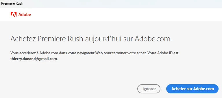 Malgré l'achat, je ne peux pas enregistrer ou exporter ou partager mes projets car on me demande d'acheter Rush. (voir les screens en PJ)