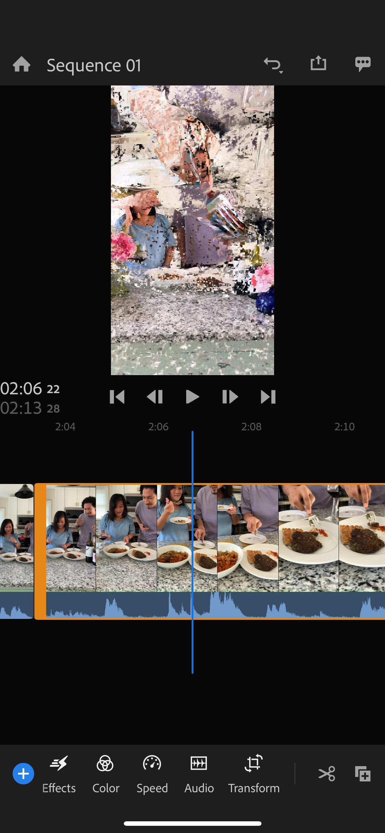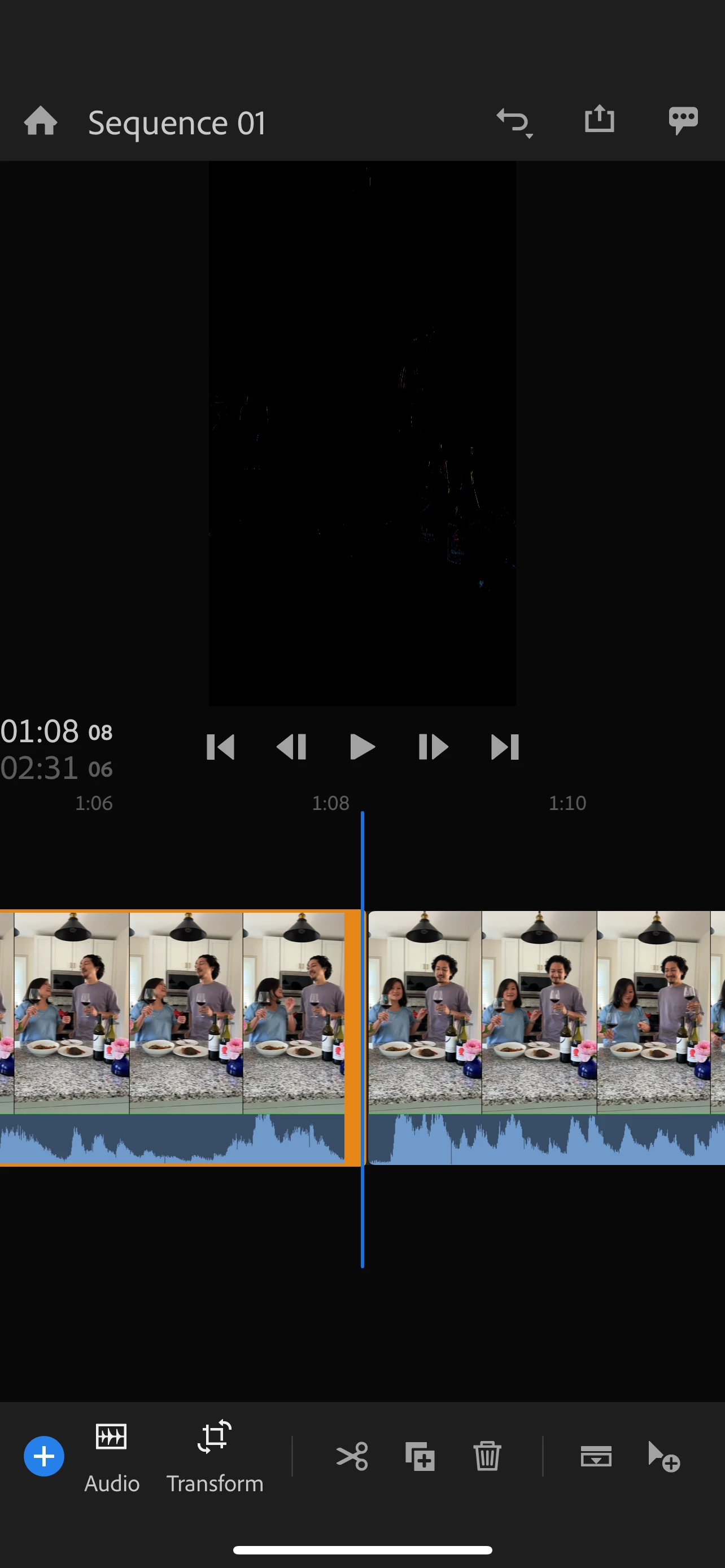 To temporarily remedy the glitch, you can manually scrub through the video timeline slowly allowing each cut to buffer properly. Playback should then reveal a clean project.