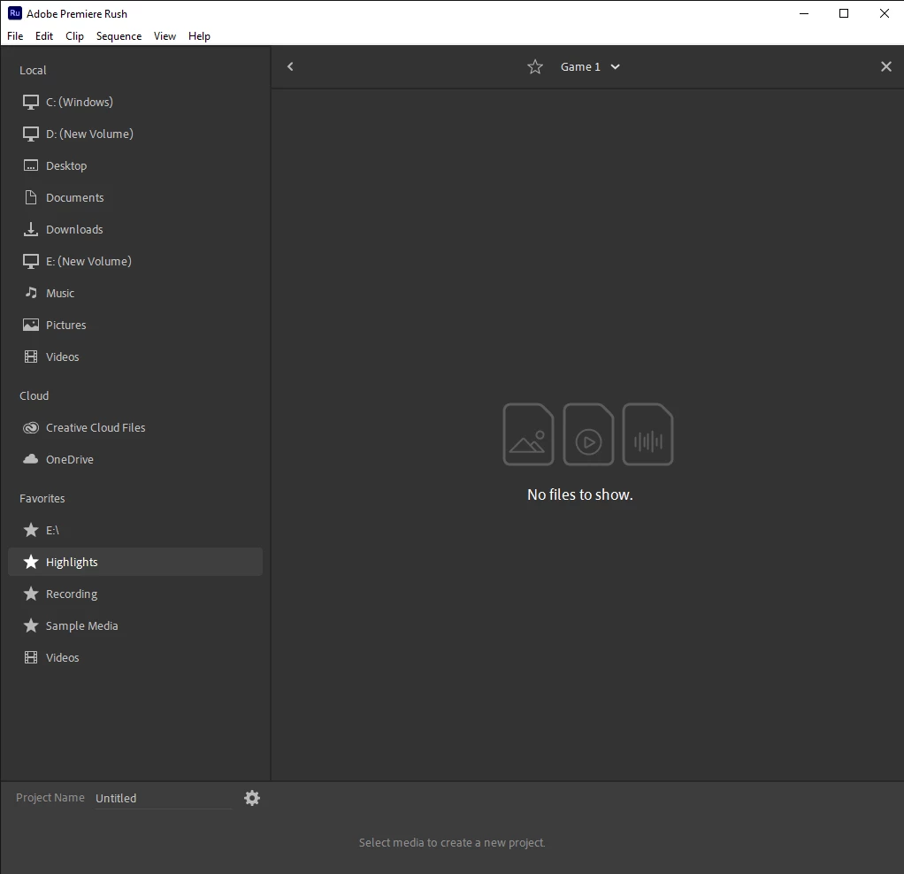 I'm on window 10 and have a pretty up to date computer. It was working fine a month ago and I just updated the latest one today 11/18/20 especially since before I updated it, it was still having the same issue. Basically I go to add media and in every file it can't find video footage at all. I can find music files, pictures and a short clip of a YouTube intro that I have, but I can not find any of my game recorded footage through the Adobe Premiere Rush. It's there and I know where it is on my computer and I can clearly open as well as view them but not through the application. I restarted my PC, nothing happened.