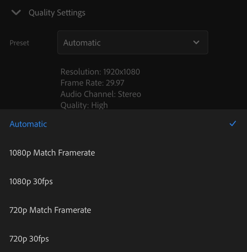 At the moment it is possible only to choose within default presets and only the resolution is different while the quality is always "high".