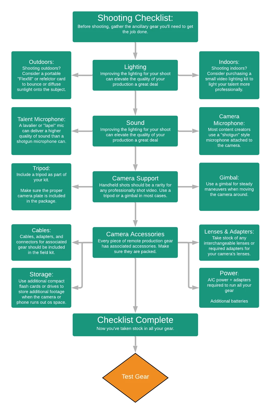 A checklist can also handy at the shoot when you are wrapping out of a location. It helps give you peace of mind that all your expensive gear is accounted for. Furthermore, you probably want to put your name on each piece of gear, especially if you are going to be on location with other content creators and to keep clear as to the ownership of each piece of gear.