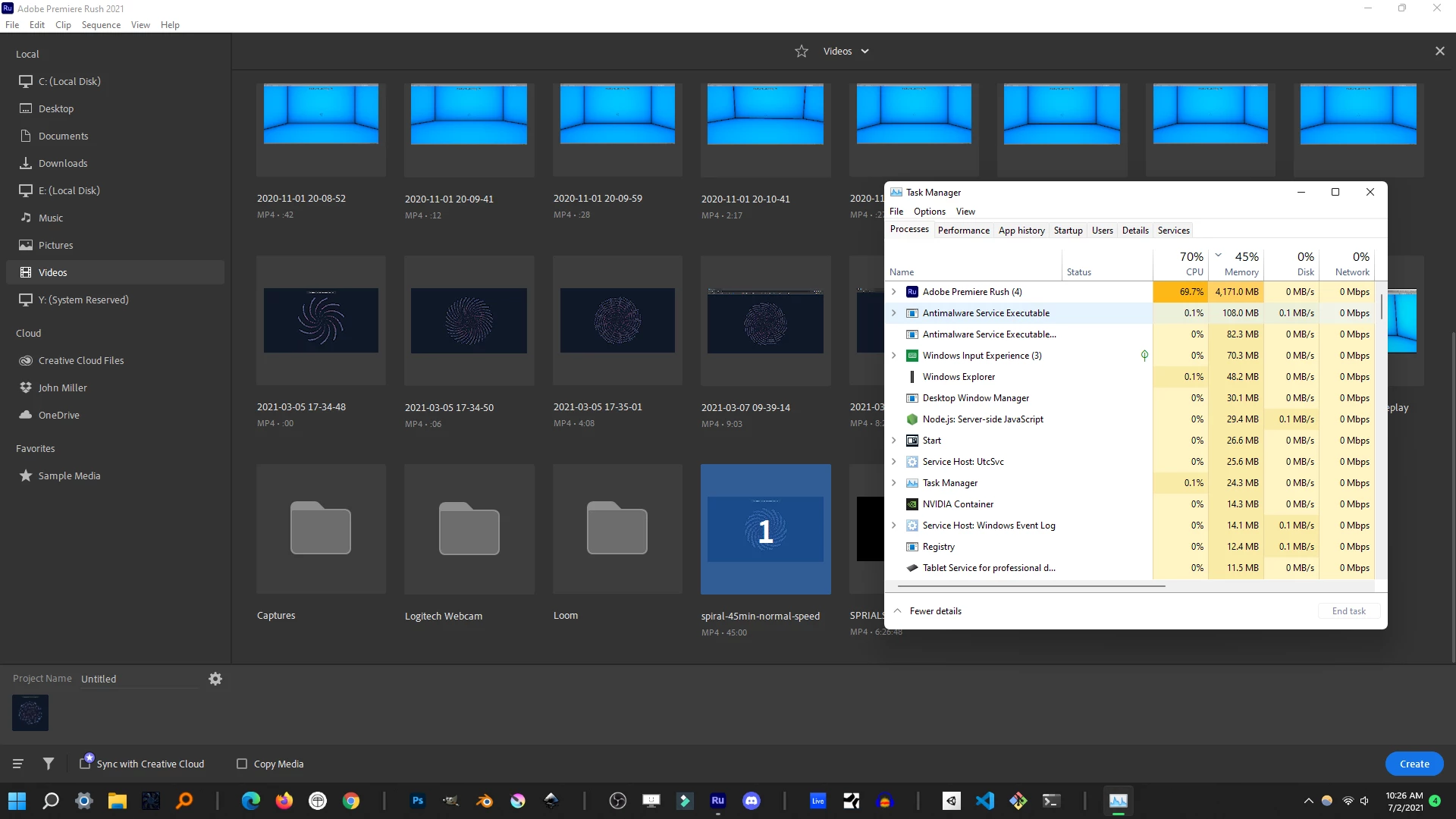 I'm tyring to load in a 45 minute video, and my brand new 400$ processor is being worked to its upmost limit trying to load this thing. Attached is a screenshot. I've tried loading it in around 5 different times now, and my computer has crashed every time. How could a simple 45 minute video cause so much trouble? Is PR actually trying to load in and process the entire video all at once? This is a disaster...