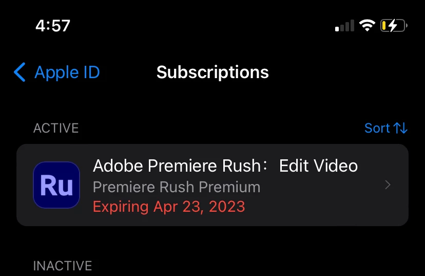 Premiere Rush subscription not working on iPhone