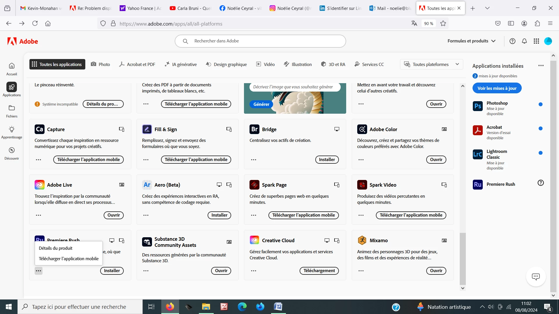 Hi, Thank you but I don't have the earlier versions available on my desktop application. As I live in France, my desktop app is in French. I only have 2 options appearing there: details of the product and download the mobile application ( see below image). Do you know where else I can find these earlier versions?