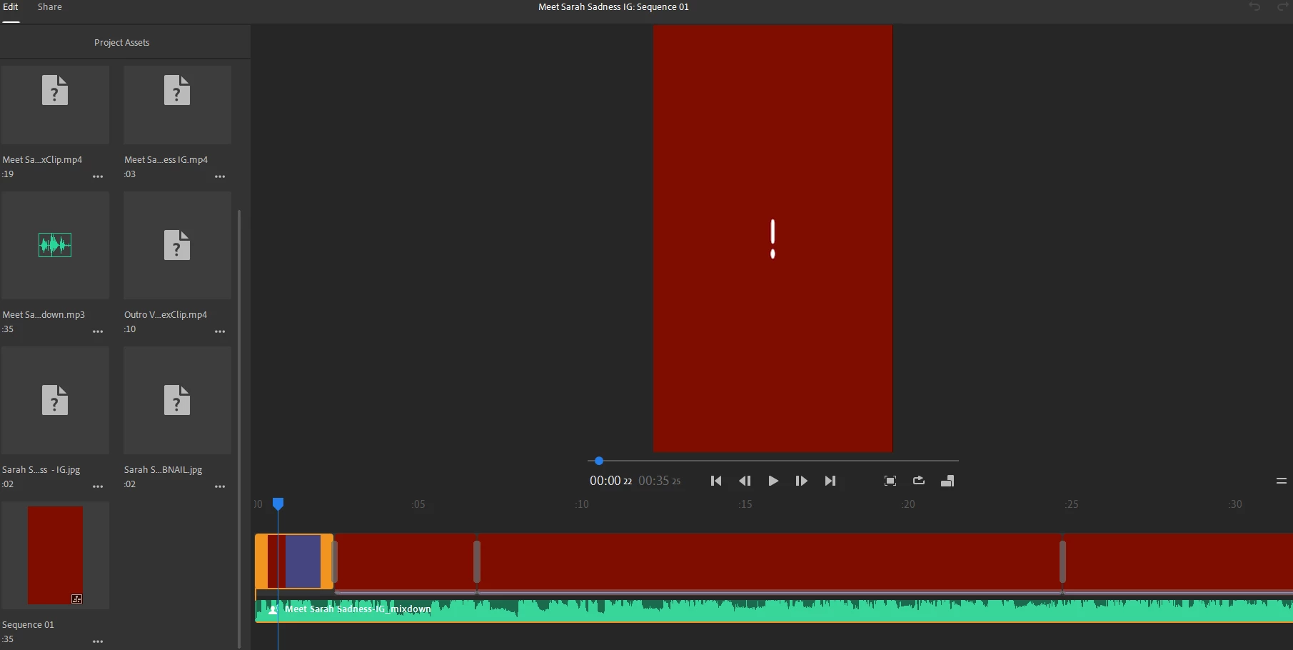 This is not the first time this has happened in Premier Rush and it is very aggravating. It is also a major reason why I stopped using this program for quite some time. But unfortunately, I like it and it works well except when it decides to 'crash' or make my project assets 'disappear'. Major bug, if you ask me. We all put a lot of work into our projects and I consider this to be a major downfall with Adobe that really needs urgent and final attention. I found several threads of this stupid issue but not directly applicable to the issue I am experiencing and also mostly in Adobe Express (which I also no longer use because I found a better program that does not crash). See screenshot below.