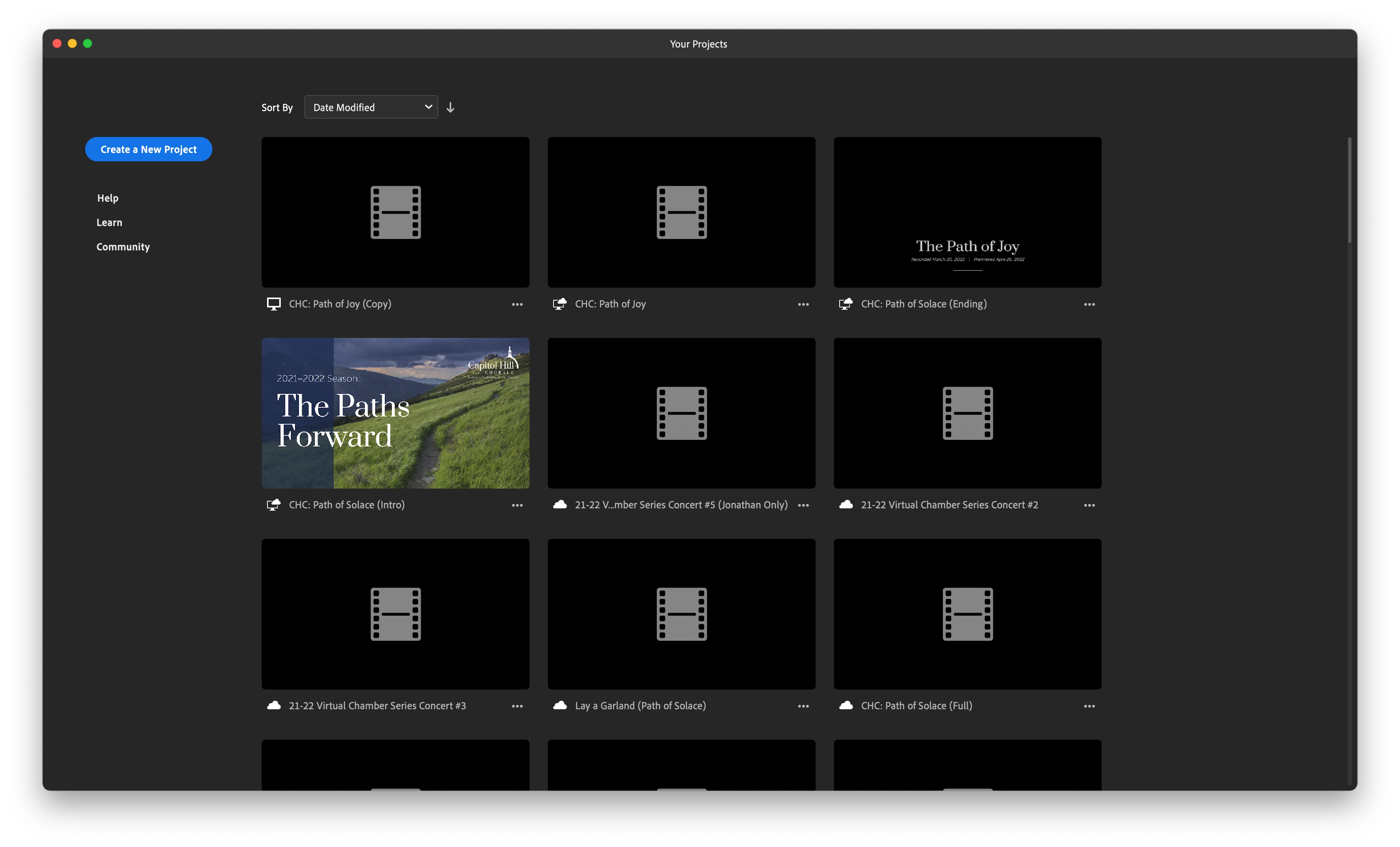 Hi there! I was in the middle of working, closed the app to take a break, and when I reopened Premiere Rush, my projects are showing as blank. Here are two screenshots: