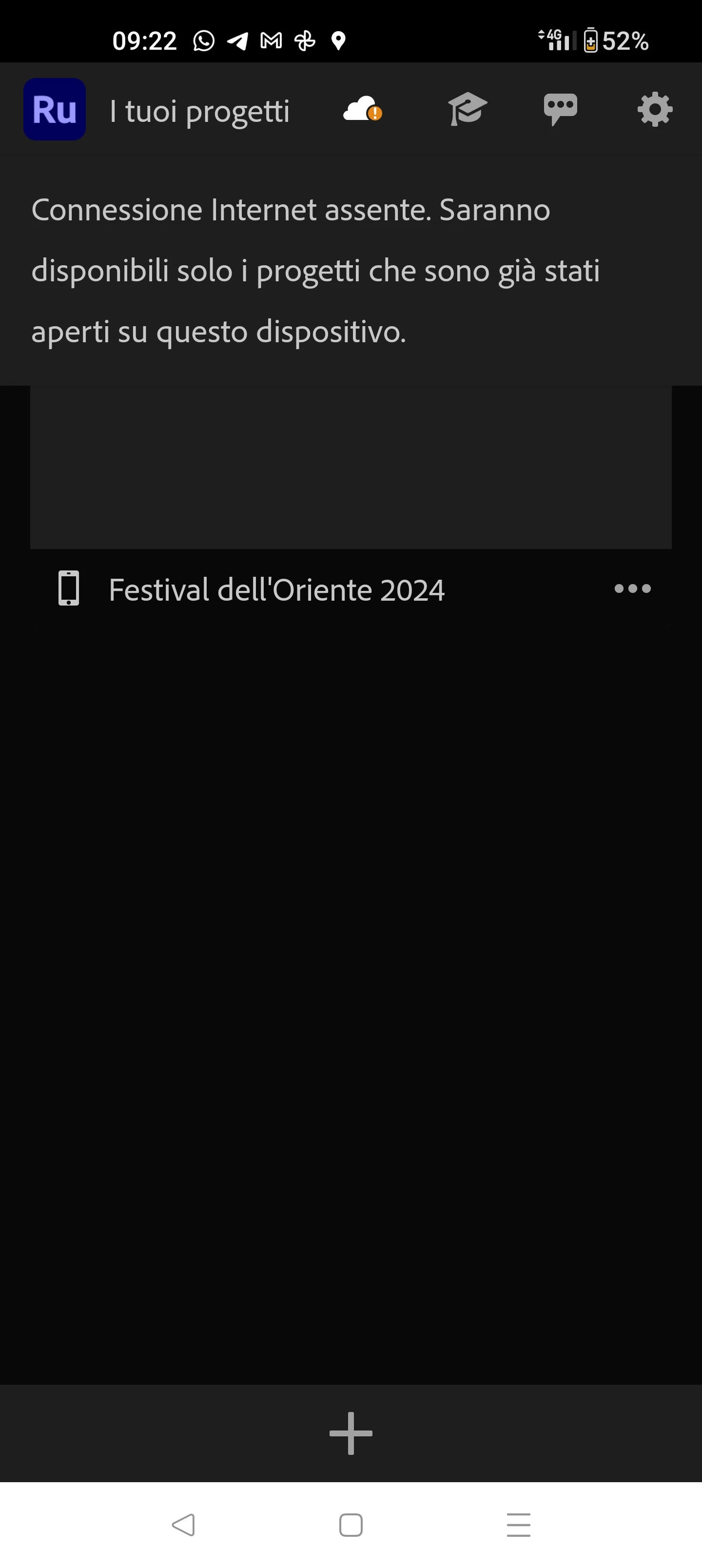 È da qualche giorno che, nonostante la mia connessione internet funzioni benissimo su tutto, all'interno dell'applicazione, continua a segnalarmi (vedi foto) l'impossibilità di procedere con nuovi progetti, a causa dell'assenza di internet. Ho anche provato a disinstallare e scaricare nuovamente l'app, ma nulla (tolto il fatto che, non mi sono neanche rimasti in memoria i vecchi video creati, nonostante io abbia fatto l'accesso con lo stesso account). Qualcuno può darmi una mano a risolvere, per favore?