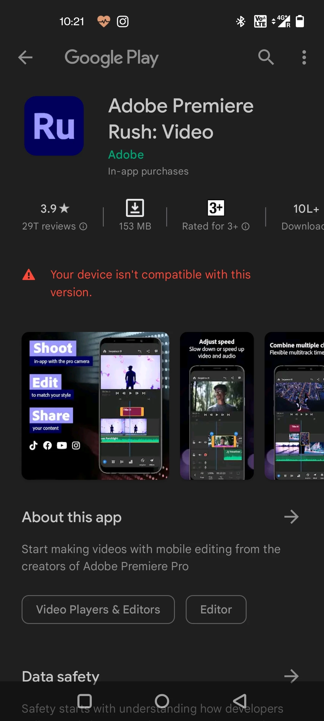 AAbhishek254677320y8kParticipantForum|Forum|3 years agoAugust 1, 2022QuestionRUSH UnsupportedForum|Forum|3 years agoAugust 1, 20221 reply149 viewsAdobe Premiere Rush isnt supported for my OnePlus 9RT running Android 11. My subscription is still 6 months from over! Help!Error or problemMobile version