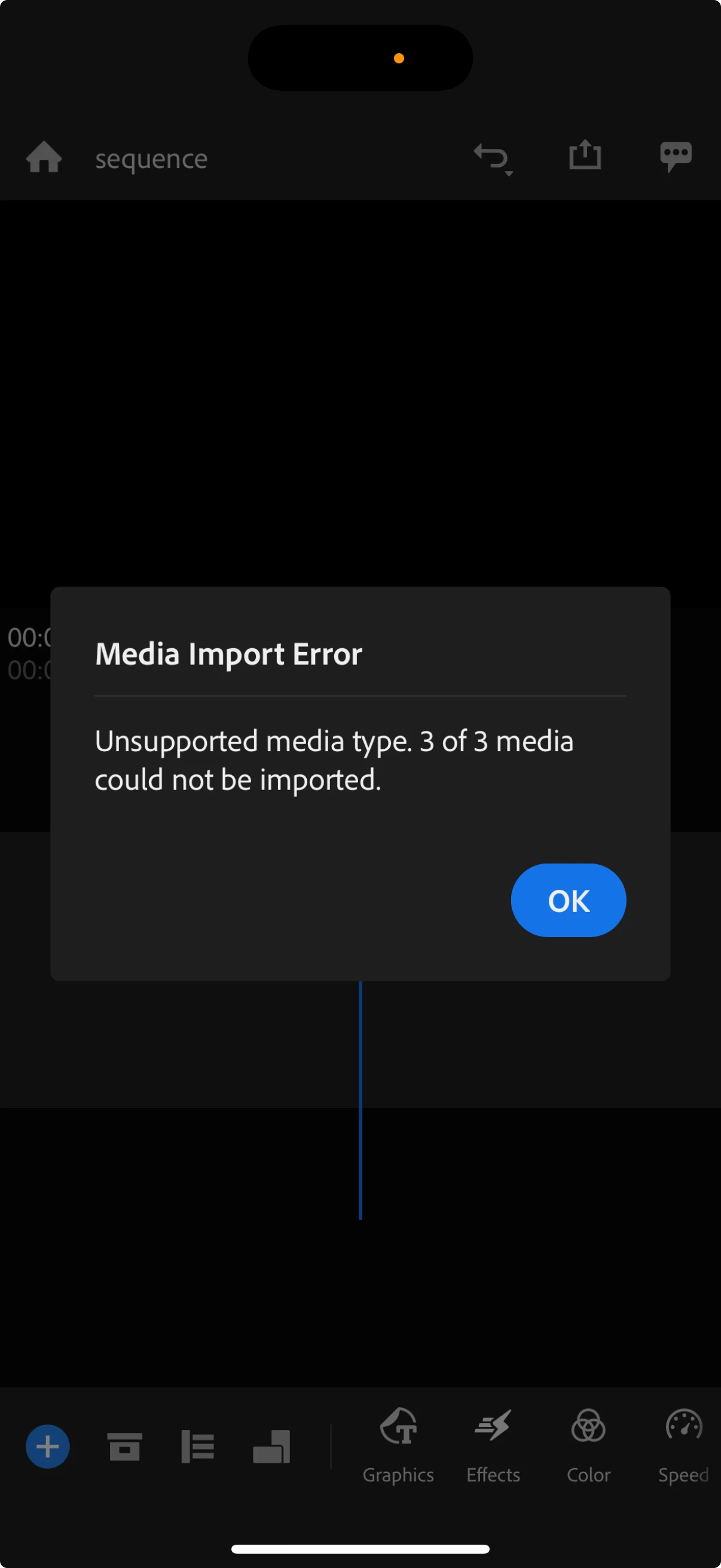 "3 of 3 media could not be imported" -- sad to see this app die. this, and many other crashing, no network, and other issues have cursed this app. Does Adobe even care about this app? It has been buggy the past year.... sad... iphone 16 pro. latest update. 4k footage