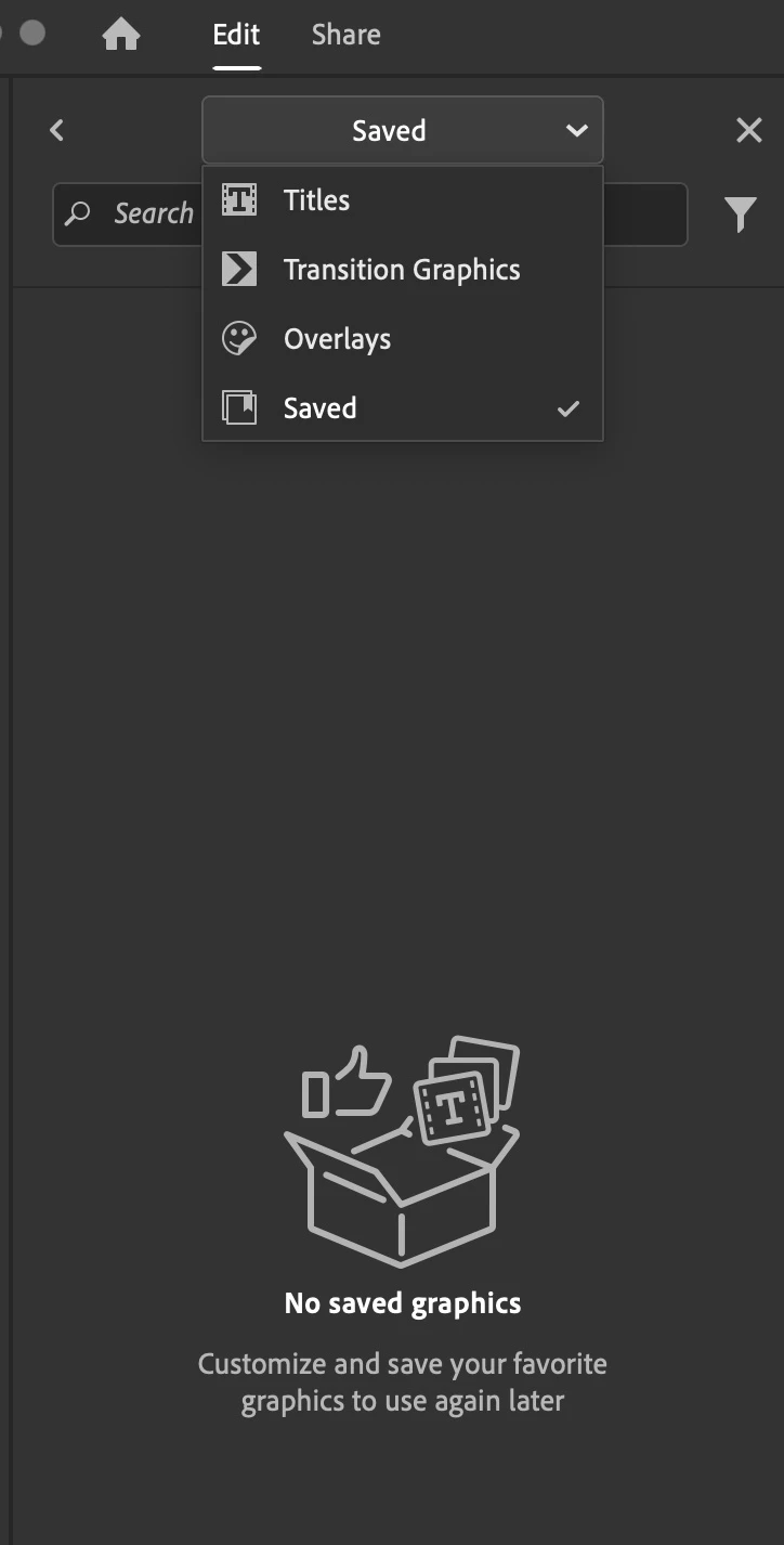 I have lots of graphics (titles, transitions etc) saved in Adobe Rush. Today I opened Adobe Rush, started a new project, and all my saved graphics are gone!! I don't understand why they have randomly disappeared. How can I recover them?