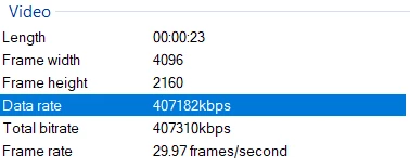 2. Media information like format, frame rate, Frame height etc.