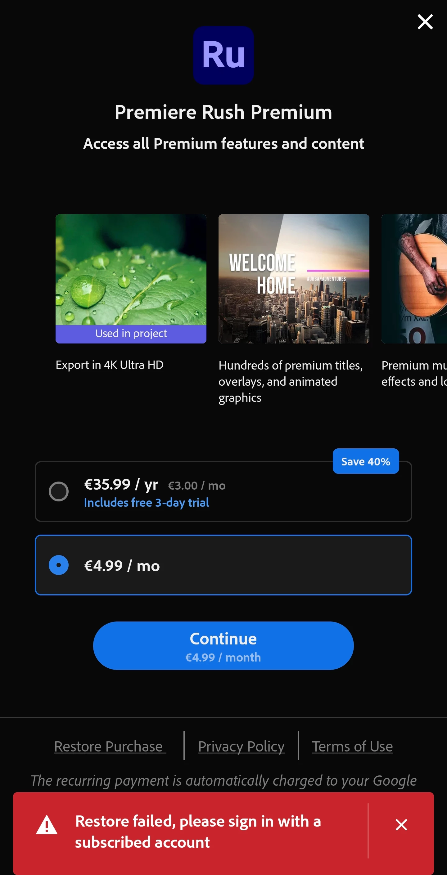 Went to export to 4k, and it says I had to upgrade.. BUT MY ACCOUNT SUBSCRIPITION IS OK AND DUE ONLY IN AUGUST 2023!!!