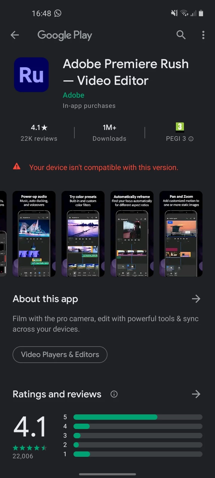 Why I can't install adobe rush to mu Samsung galaxy A21s