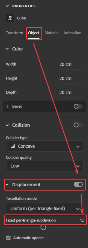 Adobe stager material is flat and displacement doesnt seem to work