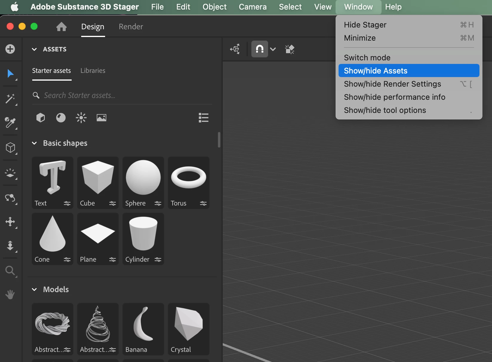 Assets and shapes control panels missing.