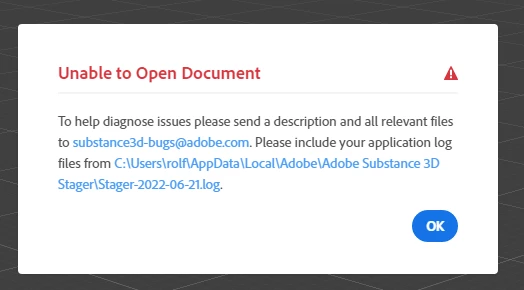 I made two scenes in Stager. After saving them, closing the app and restarting the PC later that day, the files would't open anymore. I did as I was told by the error message and emailed links to the project files and the log file to substance3d-bugs@adobe.com (on 21 June 2022). I haven't received an answer as of yet but I need to access those files next week.