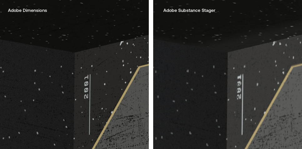 Hello. I'm having an ongoing issue with how Adobe Substance Stager is rendering out objects with hi-resolution UV maps. The image below captures what is occuring between Adobe Dimensions and Adobe Substance Stager. The exact same file that was created and used in Dimensions is opened in Stager and when both are rendered Stager is rendering far poorly compared to Dimensions. Again this is the same UV artwork and same resolution. Even tried to recreate it from scratch in Stager and still the UV artwork is appearing as if it was low res. Please advise. Thank you.