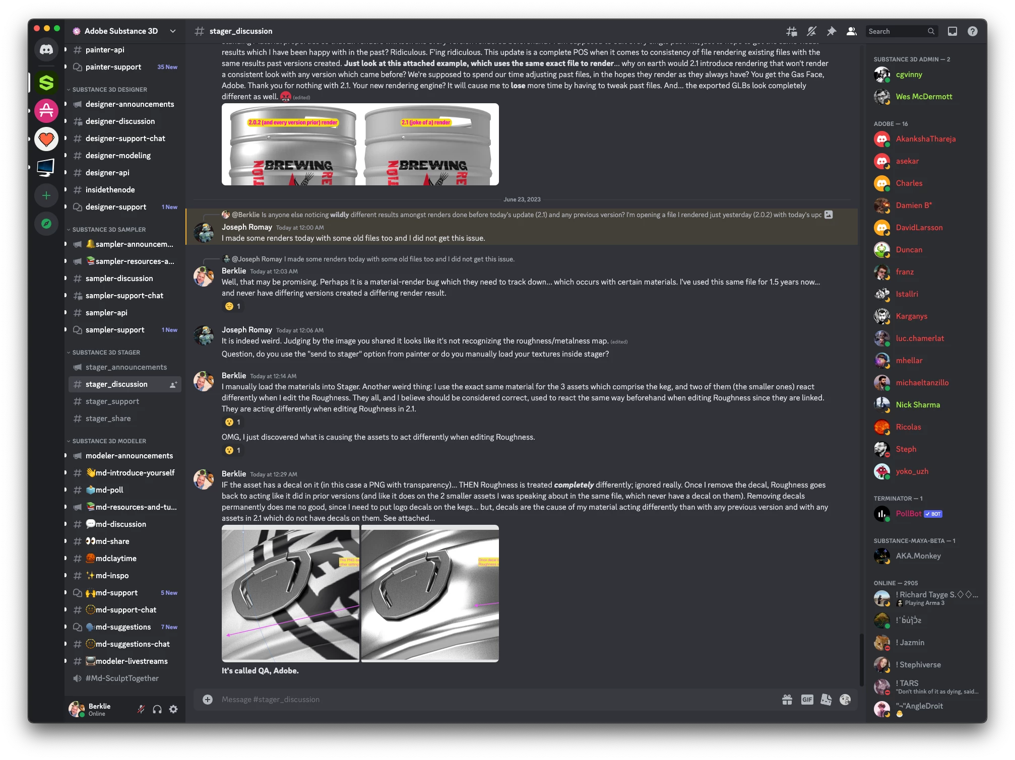 Other than the very obvious issues with decals on materials, also colours, lights and shadows now render differently, on all files I'm opening.