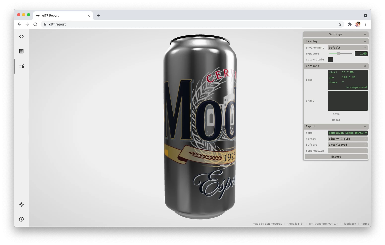 However, I have learned that when I export the "Scene..." (in my case, the can is the entire scene aside from environmental lighting), the GLB created does retain the proper sizing of all decals when brought into the same online GLTF or GLB renderers from above...