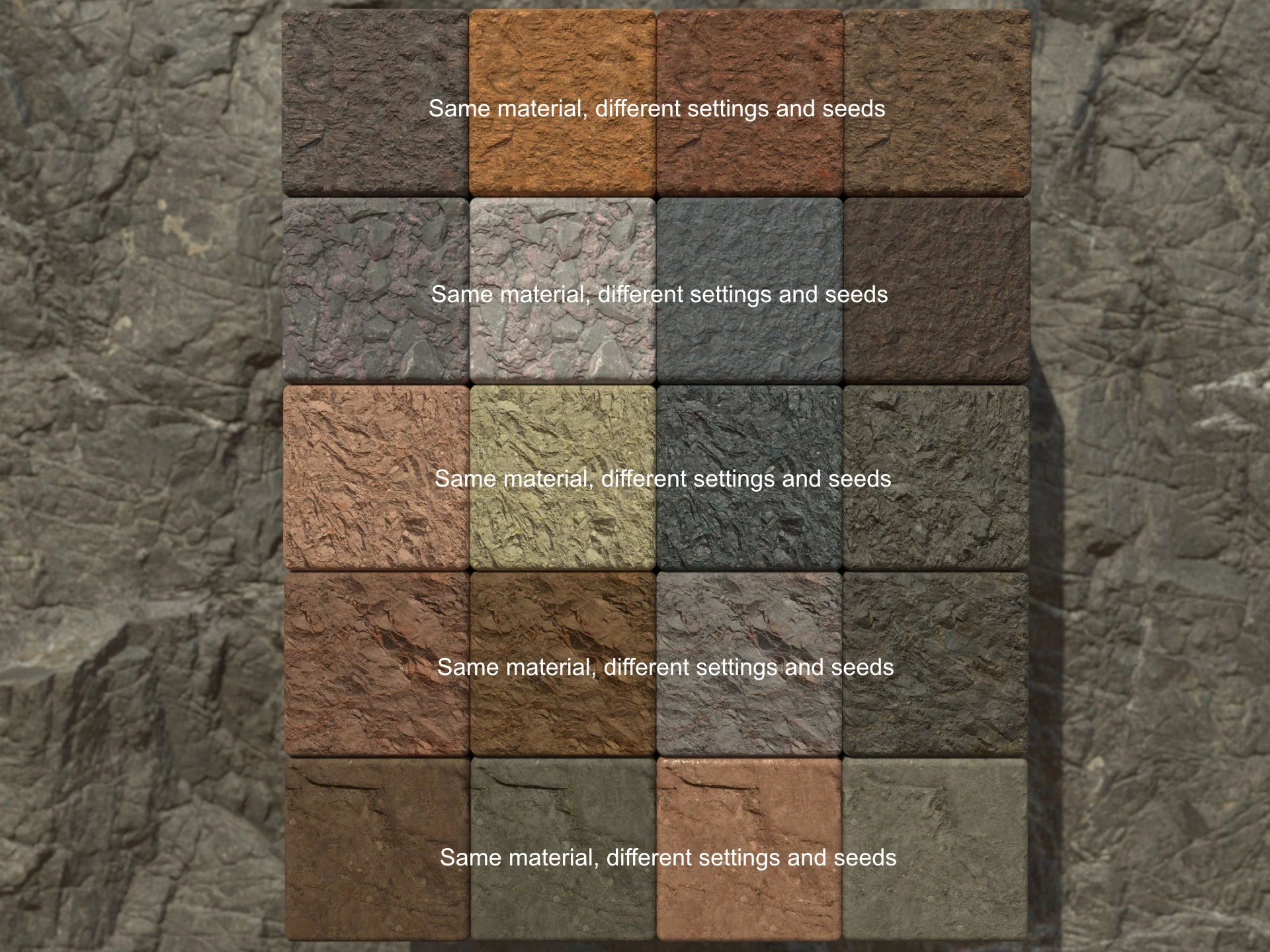 - It doesn't look like material instance randomness is working. I changed the random seed on each cube, but the material doesn't change (each row in the attached image is the same material with a different seed).