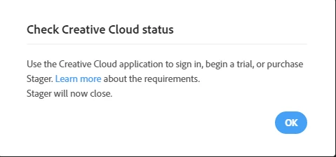 I have a paid subscription and I am logged into Creative Cloud on the app and on the website. I've also tried running Stager via the launcher in Creative Cloud with no luck.
