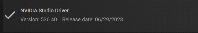 将您的系统更新到最新的 Nvidia Studio 驱动程序,即 536.40。如有必要,请完全卸载驱动程序,重新启动系统,然后全新安装新驱动程序。