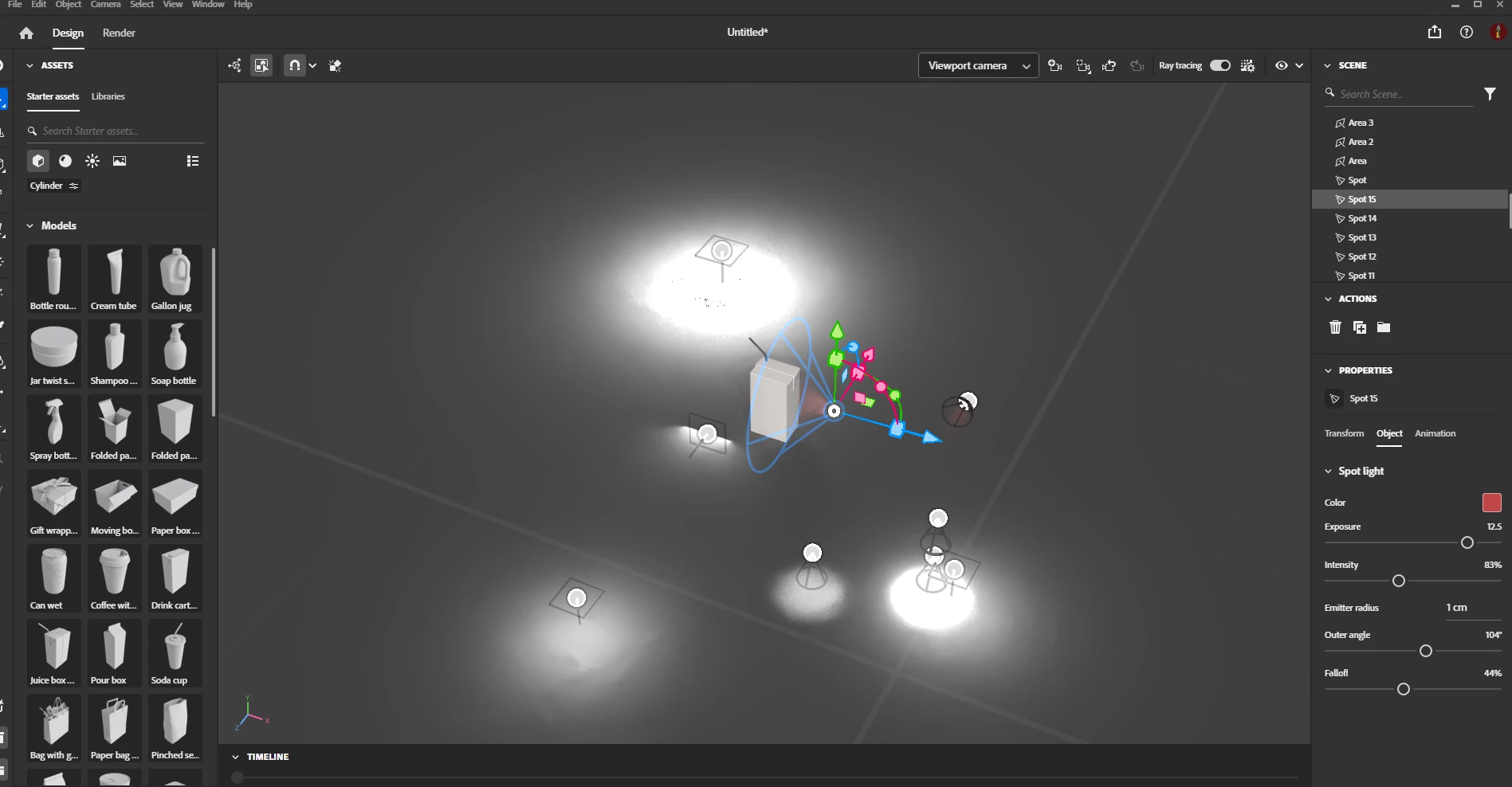 Below is a screenshot of my scene. The emitting light sources are what I added first. None of the other sources are emitting light.