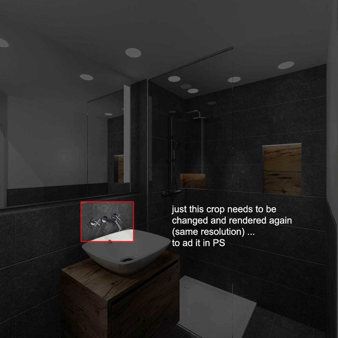 Then i discovered, i need to change the material of only one object... Is there an easy workarround just to render a crop (same camera-settings), in order to put them together in Photoshop?