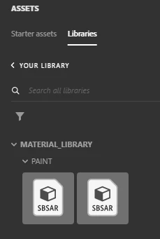 Barring that, I have exported each material as an .SBSAR file. This is not ideal, but at least works. Below you can see where I have added a custom MATERIAL_LIBRARY with the subcategory of PAINT. Is there some way to generate or set a preview sphere of the material instead of the SBSAR icon? This is going to be extraordinarily difficult for my designers to sift through 75 different paints without any kind of preview: