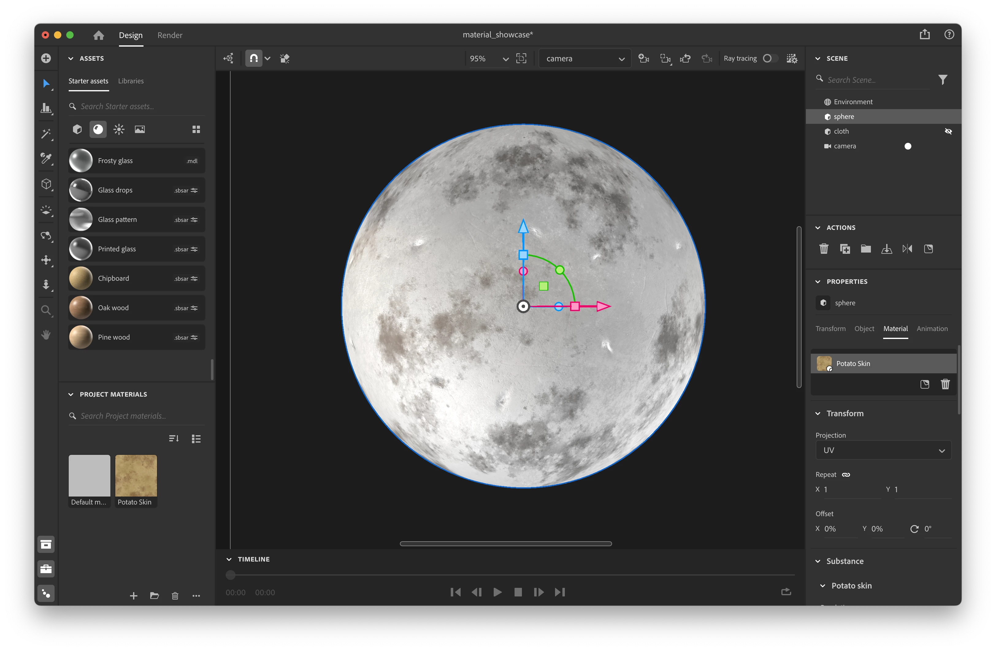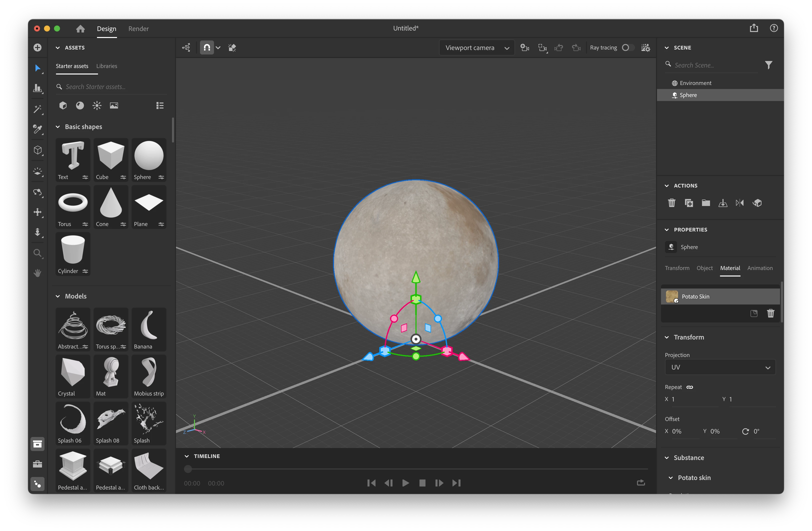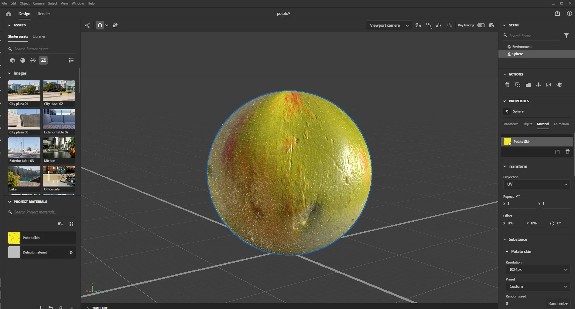 Render a sphere with potato material