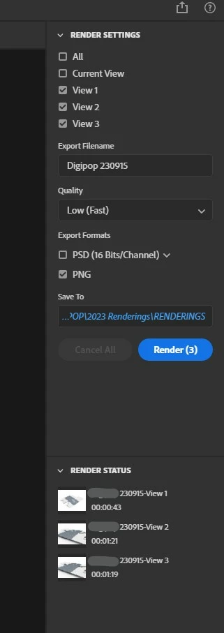 Hi ! I want to create draft or medium quality renderings but I only got it once. Since 3 days impossible to return an image because it is blocked at 50%, the timer increases, increases and never stops. I just place two lights, check and replace heavy materials, lower the settings for rendering but nothing changes. I don't know what's different with my first and only successful render (I'm just adding a little decal). Thank you !