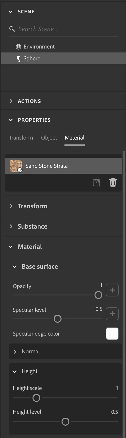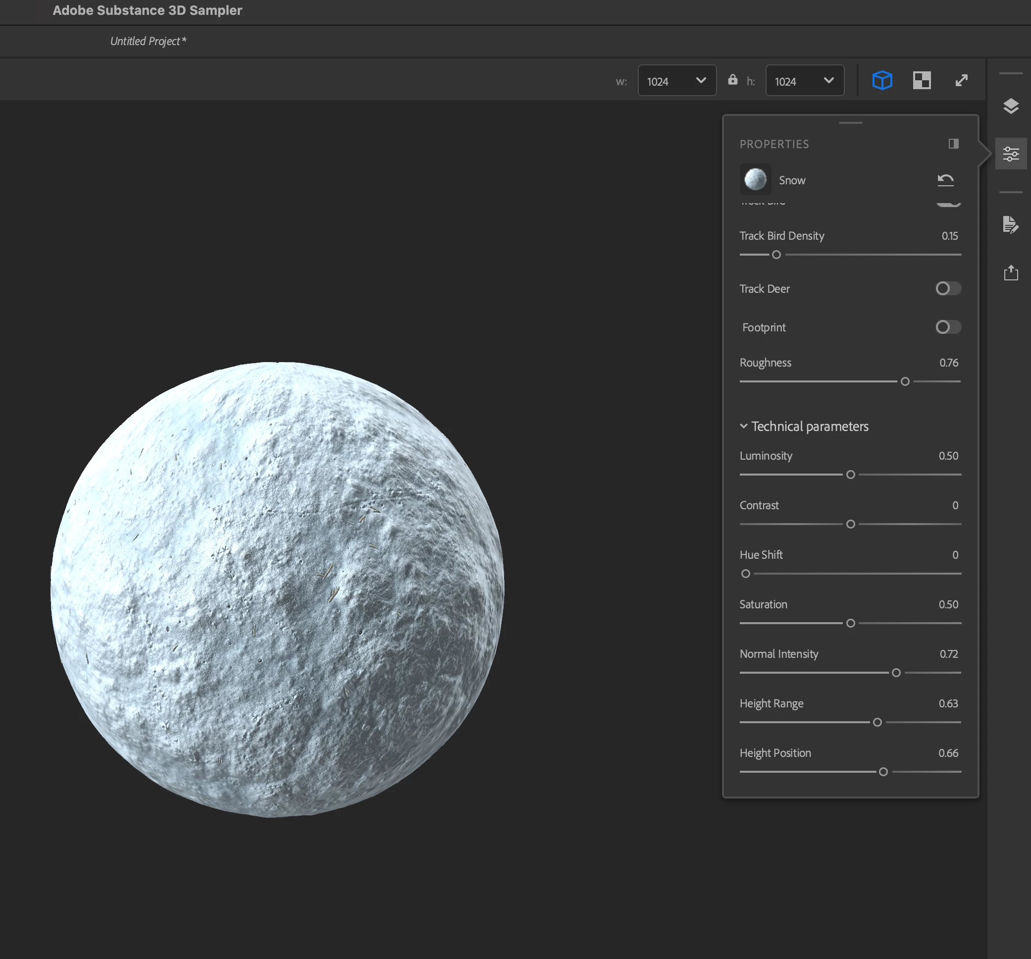 I'm relatively new to the Adobe 3D workflow... I just wanted to test out Adobe Sampler by modifying my own wet snow material. It looks great in Sampler, it has height, texture, everything. I exported it as an sbsar (i experimented a bit with what features were checked off for the export) and dropped it on a sphere in Stager and even with Displacement checked on in Stager, the material appears flat and lifeless. What am I missing?