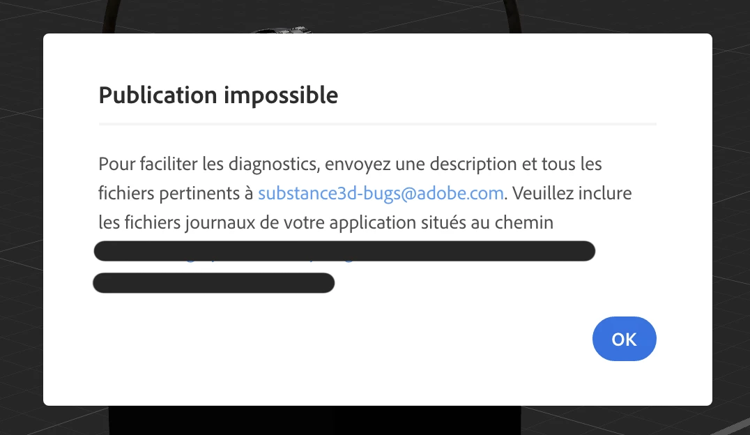 I'm using Adobe 3D Stager in order to make product presentation scenes for my company. We need to share the 3D scenes with the share link, but it's not working correctly. At first it would work with no issue, but now every time I try to create a new link, a pop-up says that it's "impossible to publish".