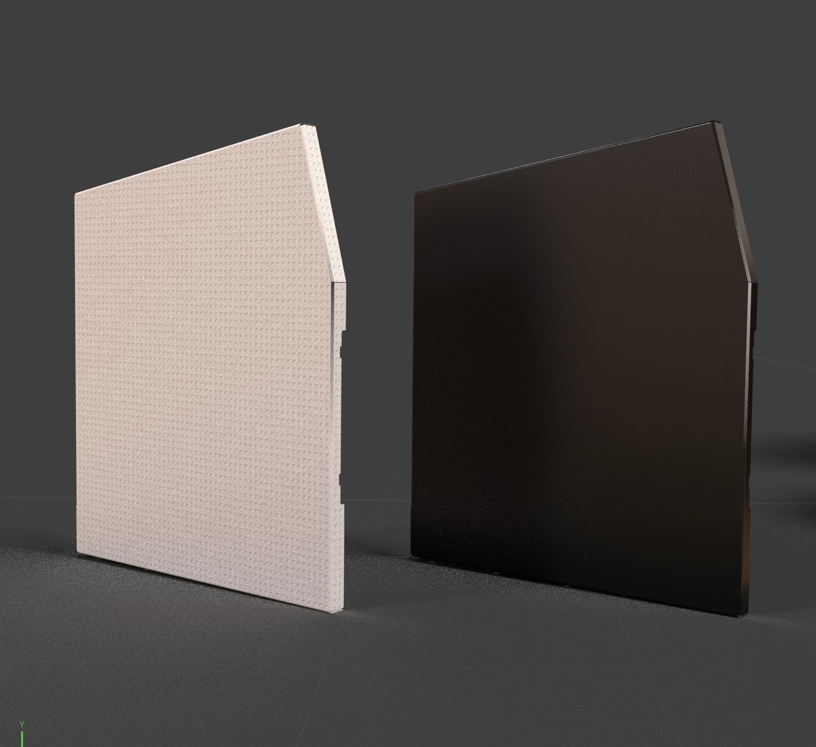 The black surface represents the original material, and the lighter one shows the unintended mosaic result.