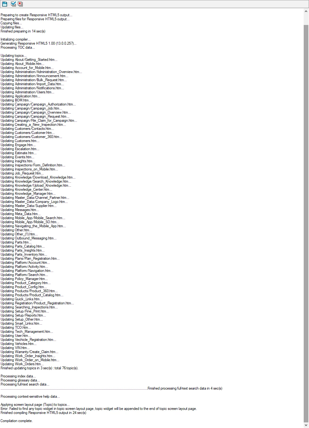 I am very new to Robohelp 2017, but have just run into this problem for the first time. I have edited all of my content, and when I go to click output to responsive HTML, this is how it opens in a browser. I have checked all the settings, but honestly, I'm not sure what I may have clicked to make this happen.