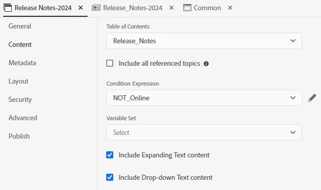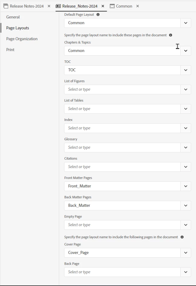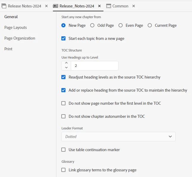 Here is the TOC for that and you can see there are no common pages included. It is front matter with TOC and empty backmatter.