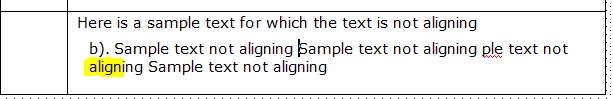 The text string displaying coffee, is part of a.) and should align as follows, but it doesn't and I find no setting in style>edit, to align it.