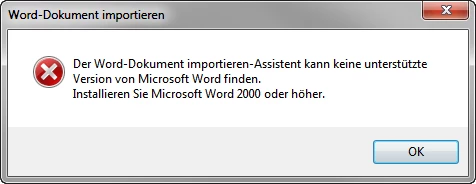 When I try to import a Word-Document (I downloaded and used the example document from Peter Grainge and also tried other Word-documents) I get the following message: