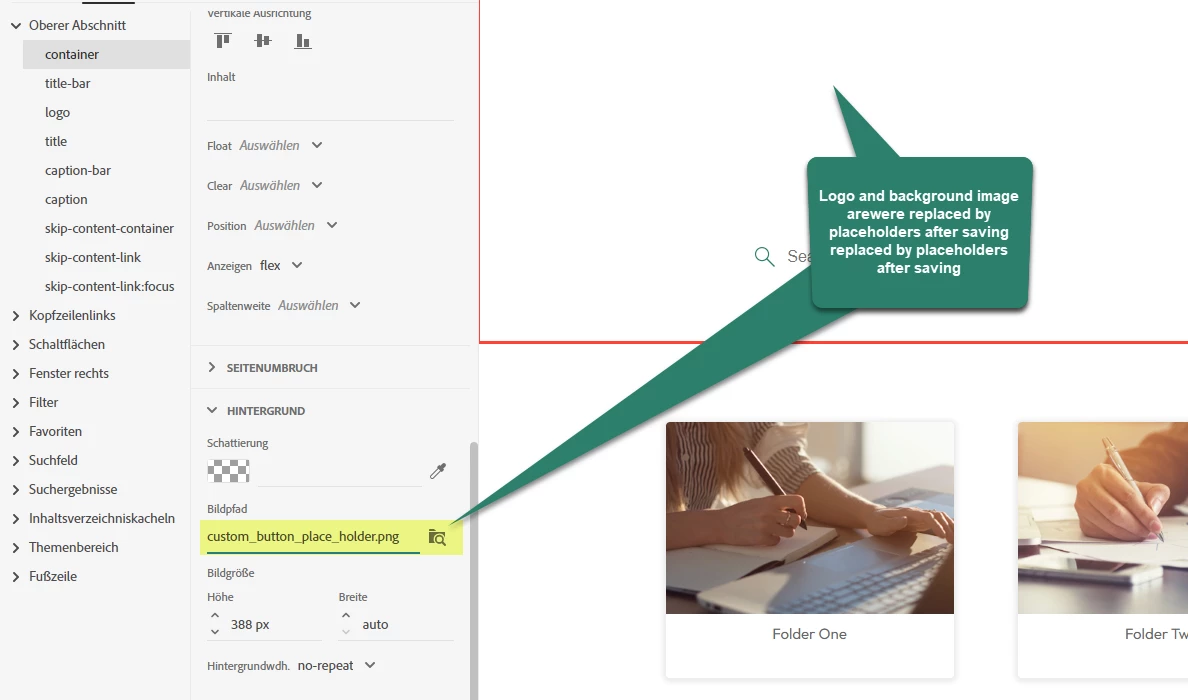 When updating from RH 2019 to 2020 for a Frameless edition, I had modified an Orange skin in RH 2019. In 2020 I cannot use this skin. The project is not calculated. So for 2020 I have to modify the skin again. (This just the back story my problem starts here:) I can't replace the logo and the background image of the homepage in RH 2020. At first everything looks fine. But as soon as I save the skin, the images are deleted and get placeholders.